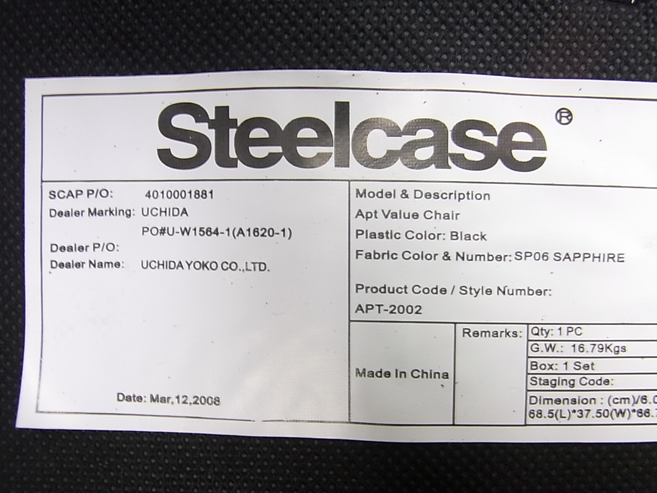 【関東倉庫在庫品】【座り心地に配慮した厚めのクッションが好評です!】■スチールケース(Steelcase)製 アプトチェア(APT) ローバック 肘無し ■ブルー 【弊社使用欄:A01004009】【ECBMC】