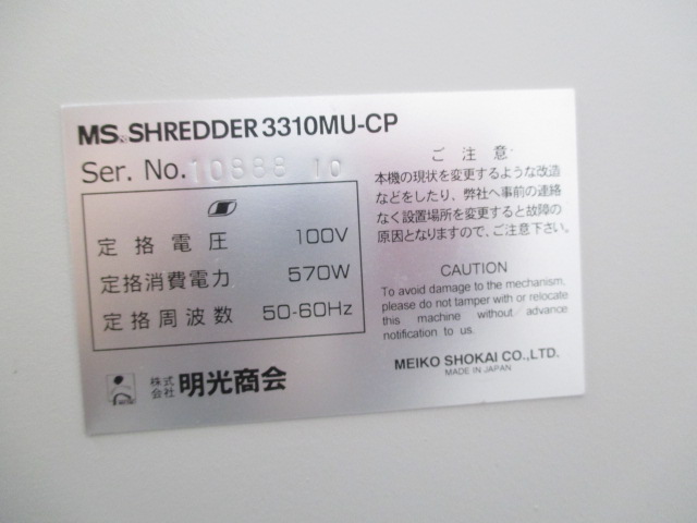 【中古】 MSシリーズ MS-3310MU-CP 明光商会 シュレッダー 143646