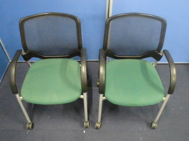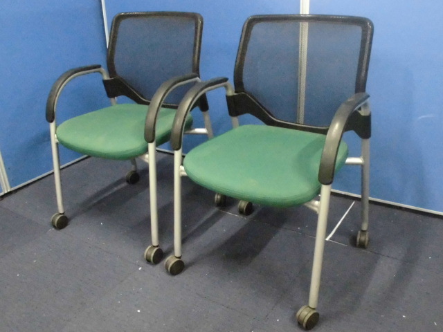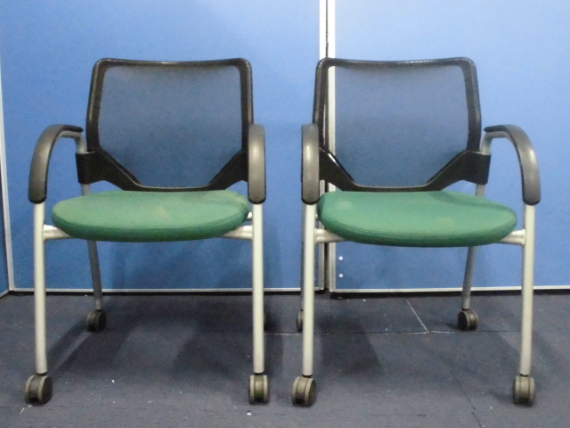 【セット】ミーティングチェア2脚セット|オカムラ|エアリ|メッシュの背もたれ|4つ脚でキャスター付き!- 立川・八王子店