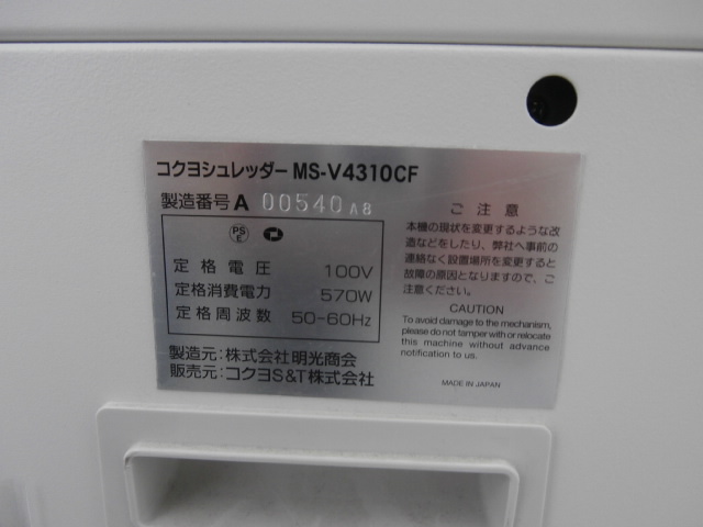 【中古】 MS-4310MU-AT 明光商会 シュレッダー 143878