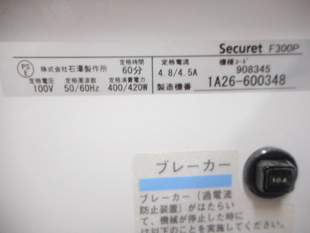 【中古】 セキュレット F300P 石澤製作所 シュレッダー 144118