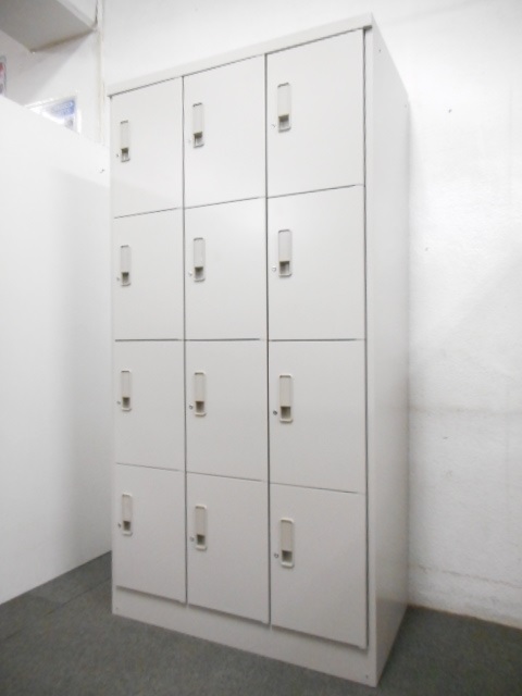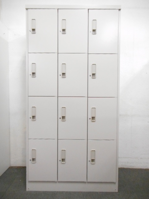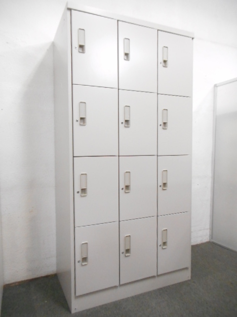 3列4段で収納スペースが12等分された、12人用スチールロッカーです。