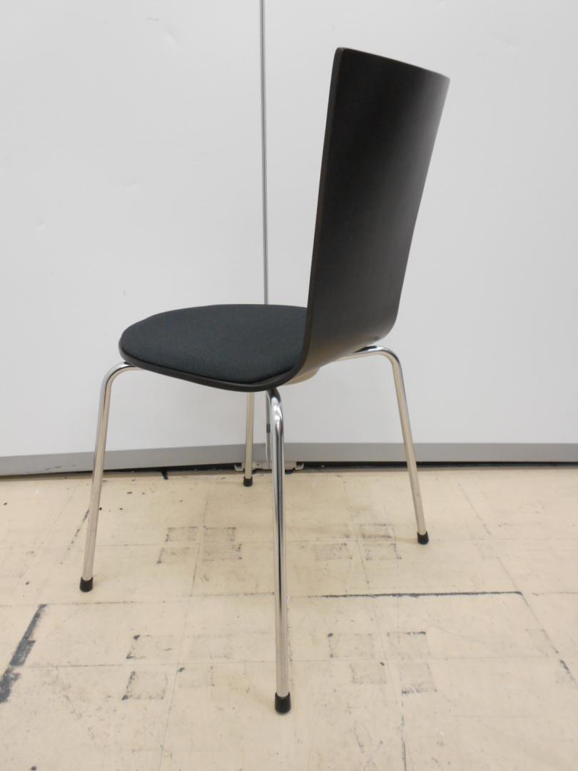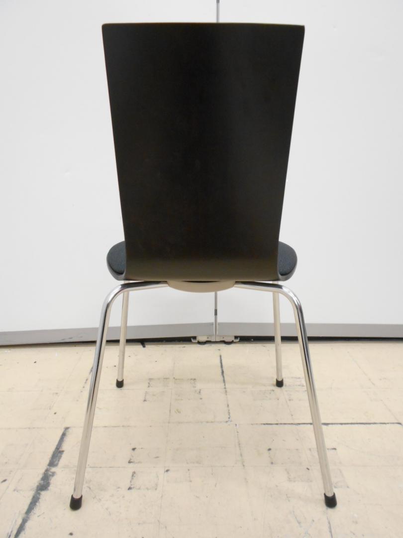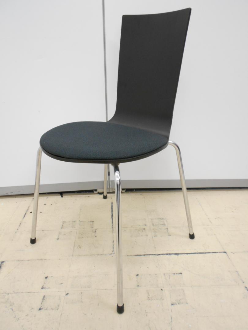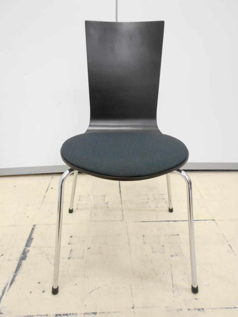 ダークブラウンの木の本体に黒のクッションで落ち着いた印象のスタッキングチェアです。 コクヨ製CK-M2001- なんば日本橋店