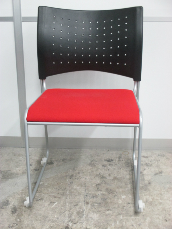 【4脚入荷】JOINTEX製スタッキングチェア 座面布張りタイプ レッド 【中古オフィス家具】【会議用チェア】- 川崎店