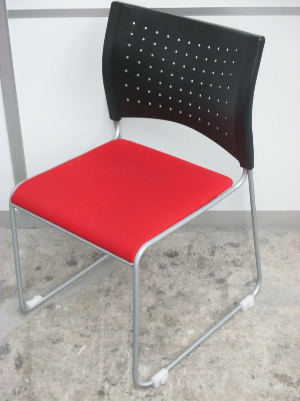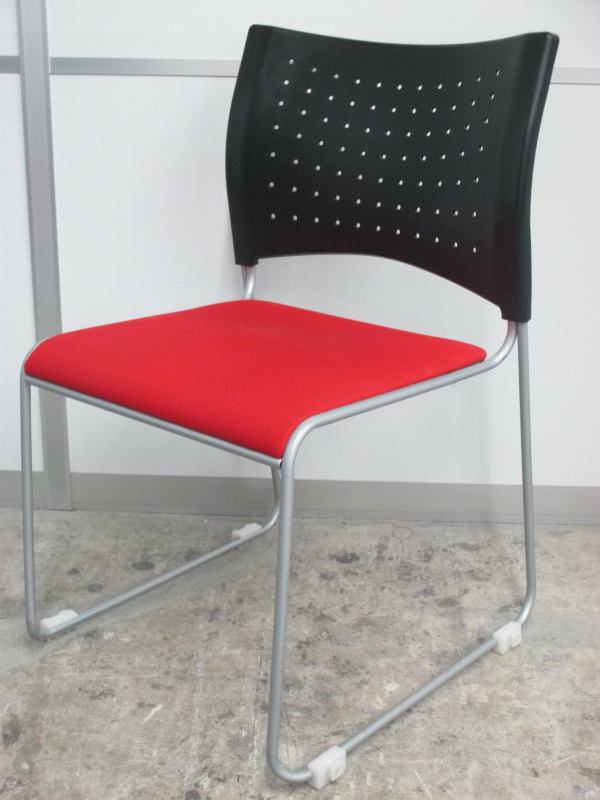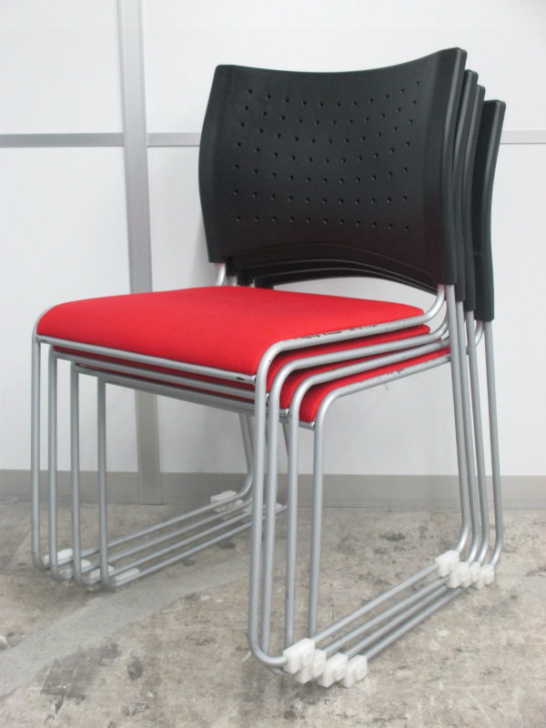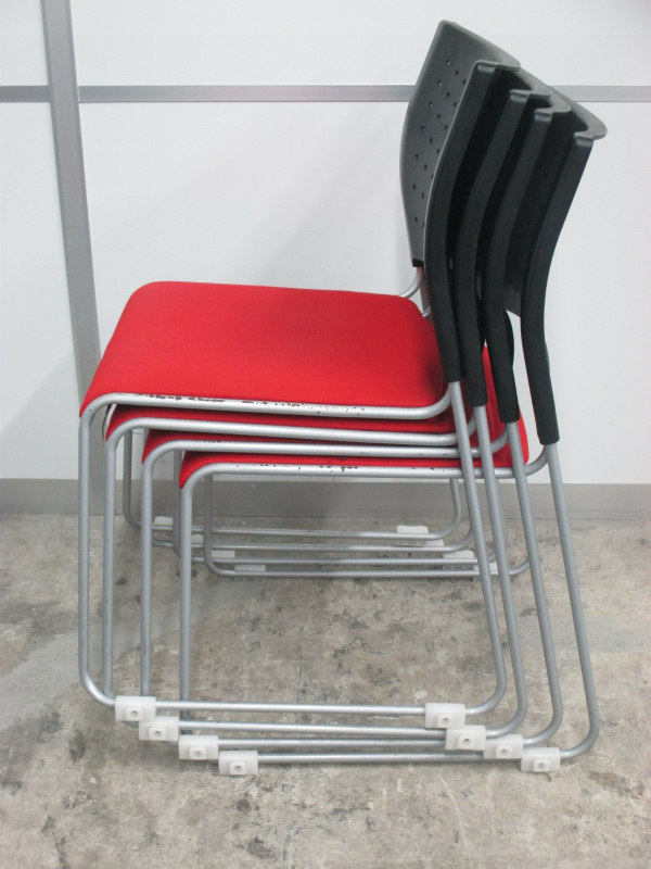 【セット商品】JOINTEX製スタッキングチェア 座面布張りタイプ レッド 4脚セット【中古オフィス家具】【会議用チェア】- 川崎店