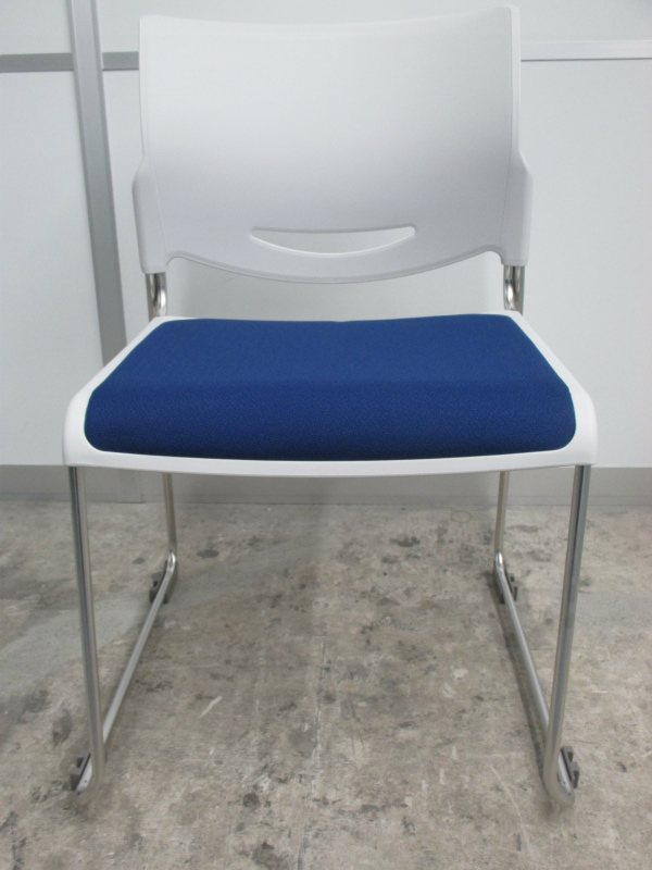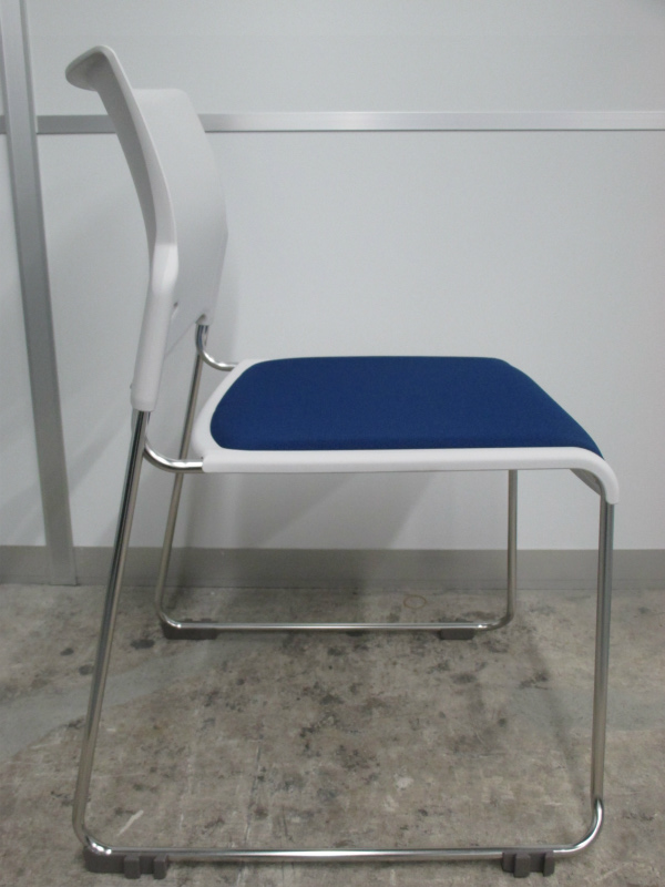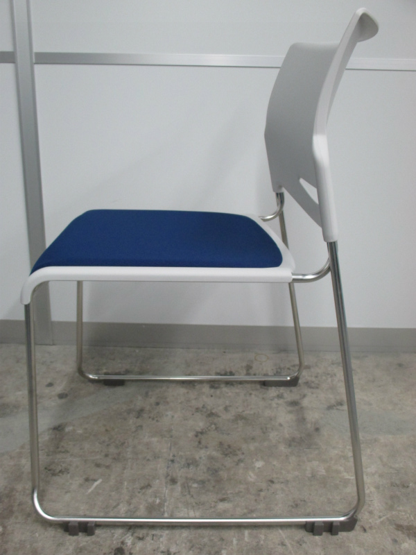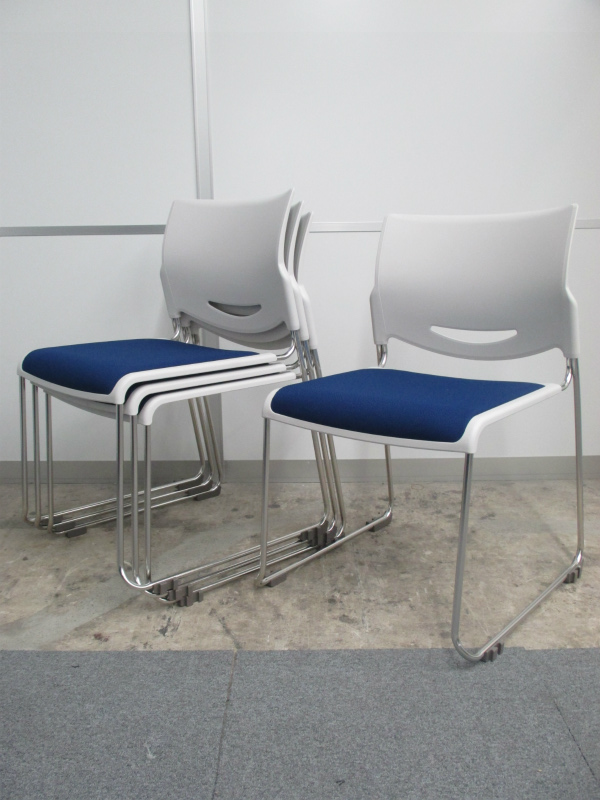 【セット商品 状態良好!】イナバ製スタッキングチェア 座面布張りタイプ ブルー&ホワイト 4脚セット【中古オフィス家具】【会議用チェア】- 川崎店