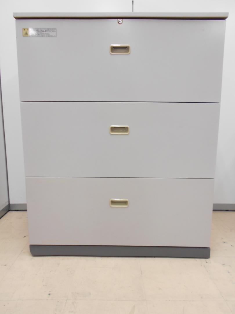 耐久性に定評のある内田洋行製の3段ラテラル書庫です。