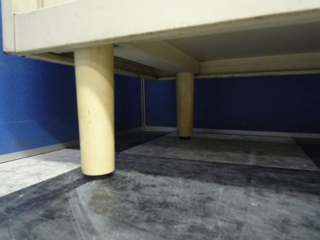 - 一部不具合あり天板歪み、引出開閉不可、アジャスター無し、施錠不可のようにそのカウンターの本来の効用を果たすための機能以外の一部が使用不可な状態。(例、引出が 開閉しづらい等がある。)