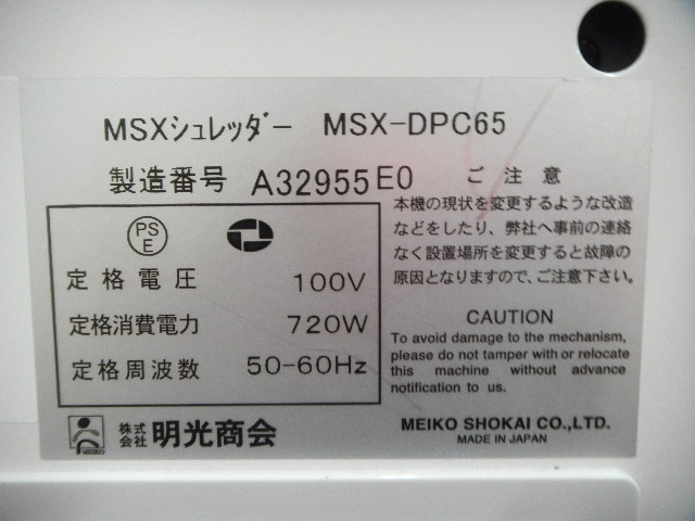 【中古】 MSX-DPC65 明光商会 シュレッダー 144702