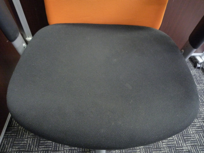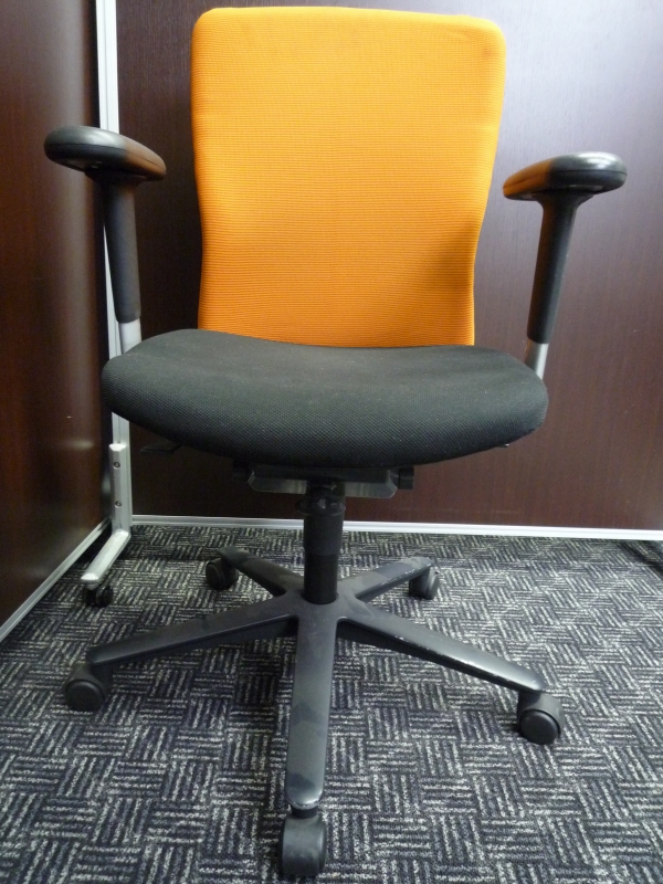 【限定2脚】■内田洋行製ルディオチェア■肘付き■独特な座り心地■空間を華やかに演出するオレンジ■オフィスではもちろんの事、ご家庭用にも!!サーキュラーバリューCO2削減量の算出について