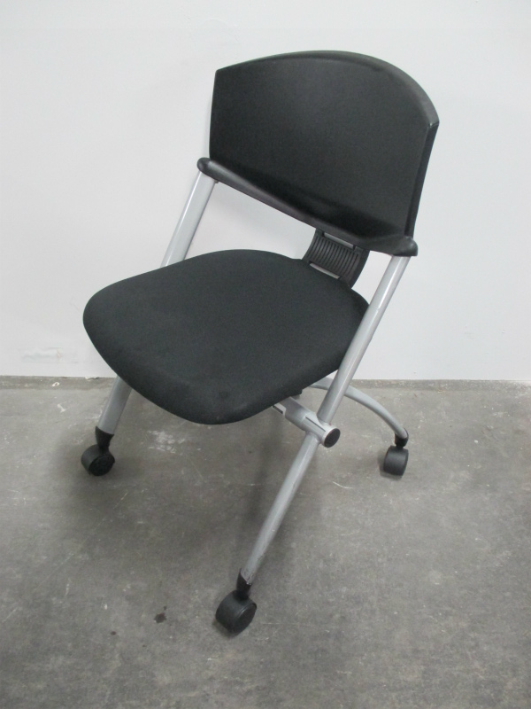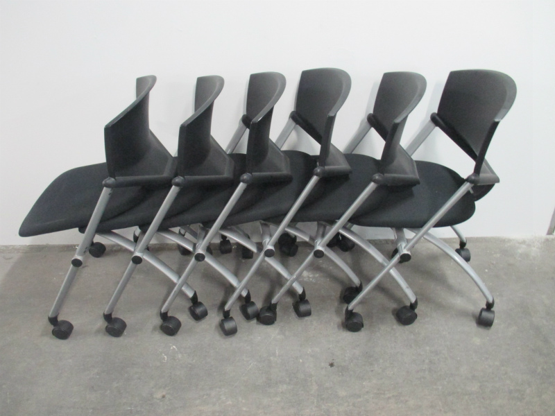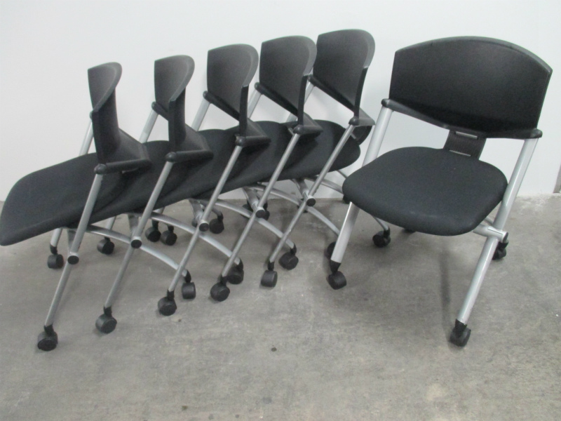 【6脚入荷】【状態良好】落ち着いた会議スペースや休憩スペースにピッタリ!黒のキャスター付きミーティングチェア!【リフレッシュスペース】【ネスティング】【背樹脂】- 川崎店