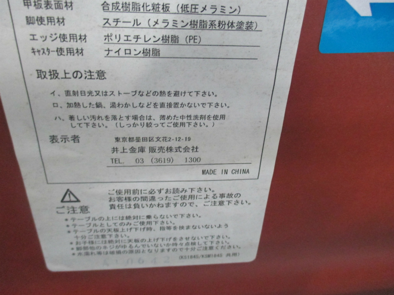 - 一部不具合あり天板歪み、アジャスター無し、キャスター使用不可ようなそのテーブルの本来の効用を果たすための機能以外の一部が使用不可な状態。(例、キャスターロッ ク機能使用不可、棚板無し等がある。)