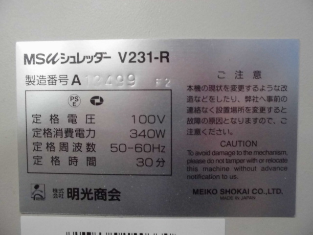 【中古】 MS-V231-R 明光商会 シュレッダー 145257