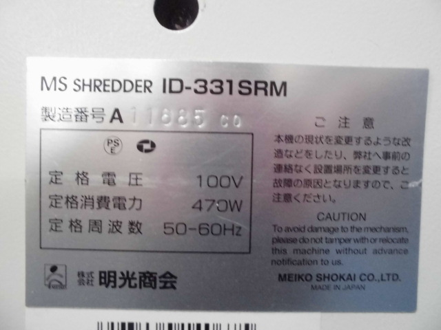 【中古】 MS-ID331SRM 明光商会 シュレッダー 145288