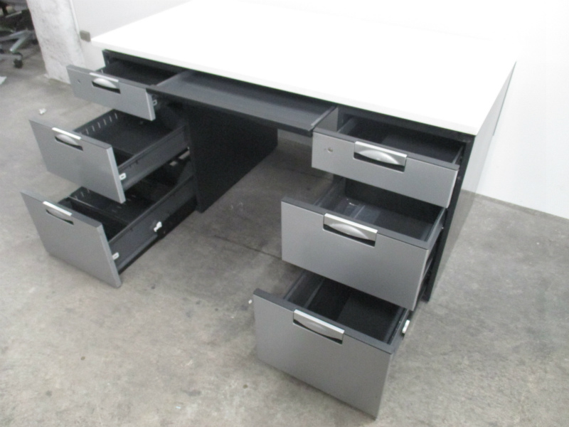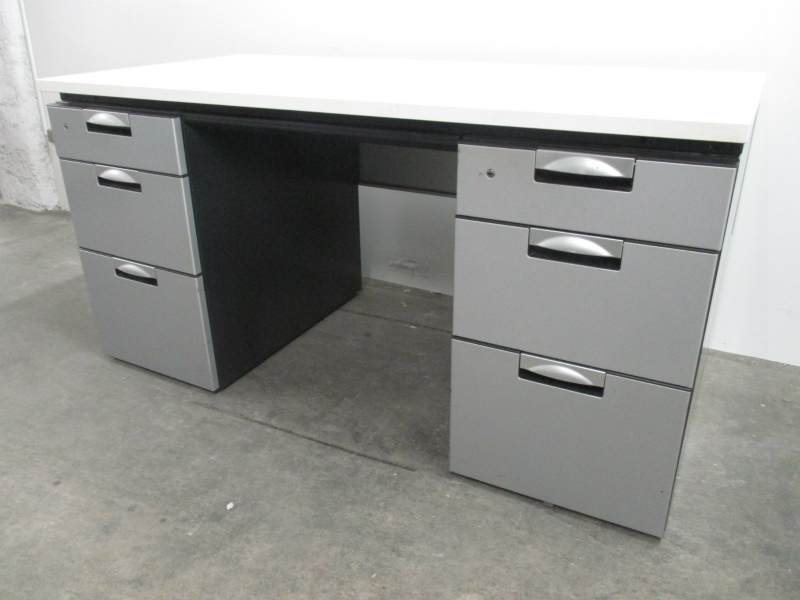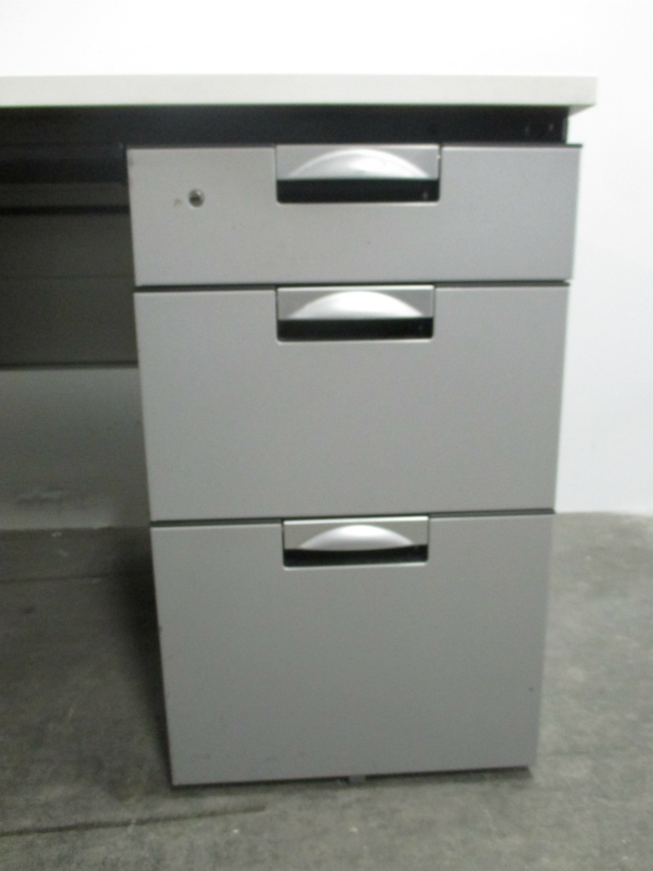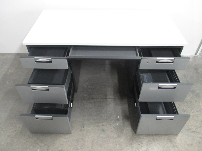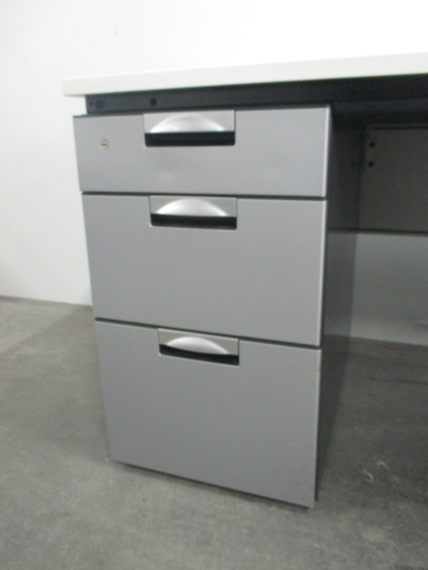 【10台入荷】両袖机をお待ちの方、おまたせ致しました!W1400の人気シリーズ大量入荷!広々使えて、引き出しも3段引出が2つ付き!【ロット】【ホワイト天板】【中古オフィス家具】- 川崎店