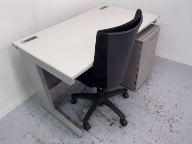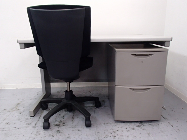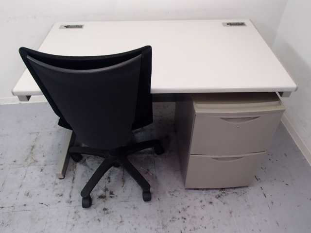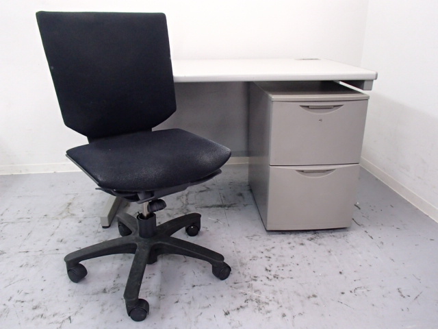 W1200サイズの平机、2段ワゴン、OAチェアのセット商品となります。