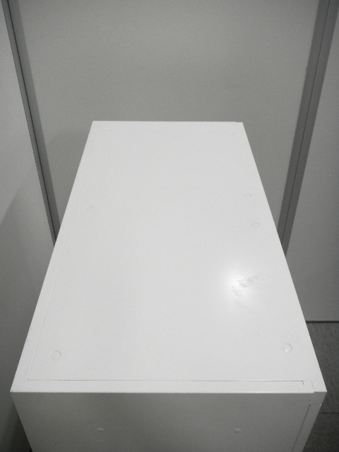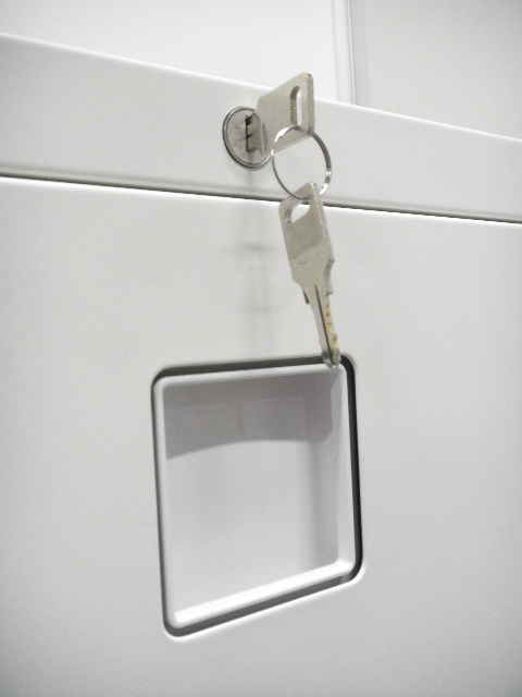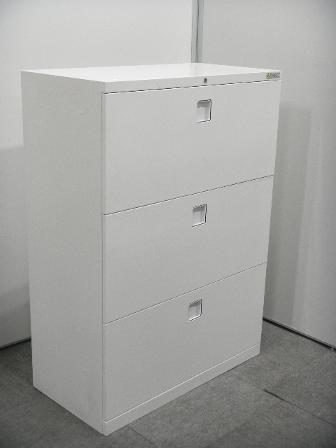 オカムラ レクトライン 3段ラテラル書庫 ホワイト天板 シリンダー錠 鍵付き ※取っ手部分に若干日焼けあり