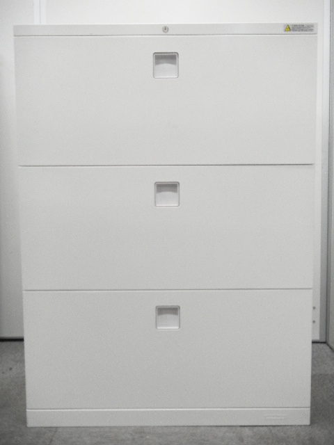 【ファイル収納にオススメ!高品質で使いやすい人気シリーズの3段ラテラル書庫!】■オカムラ(okamura)製 レクトラインシリーズ 3段ラテラル書庫 ローキャビネット H1100㎜ ■ホワイト ■シリンダー鍵 ■天板付き(天板:ホワイト) ※日焼け有