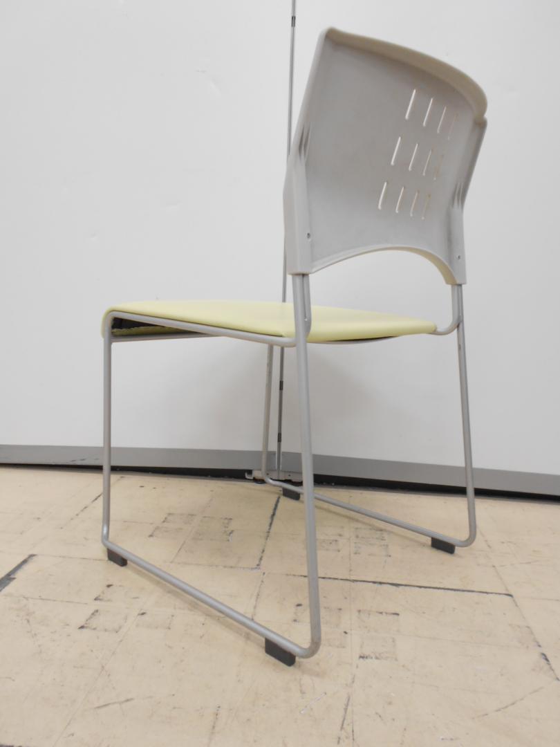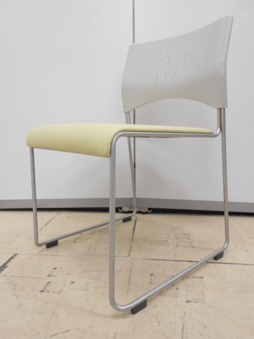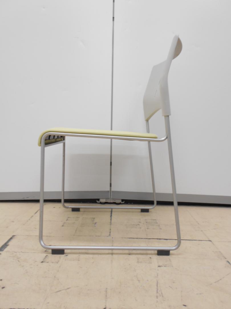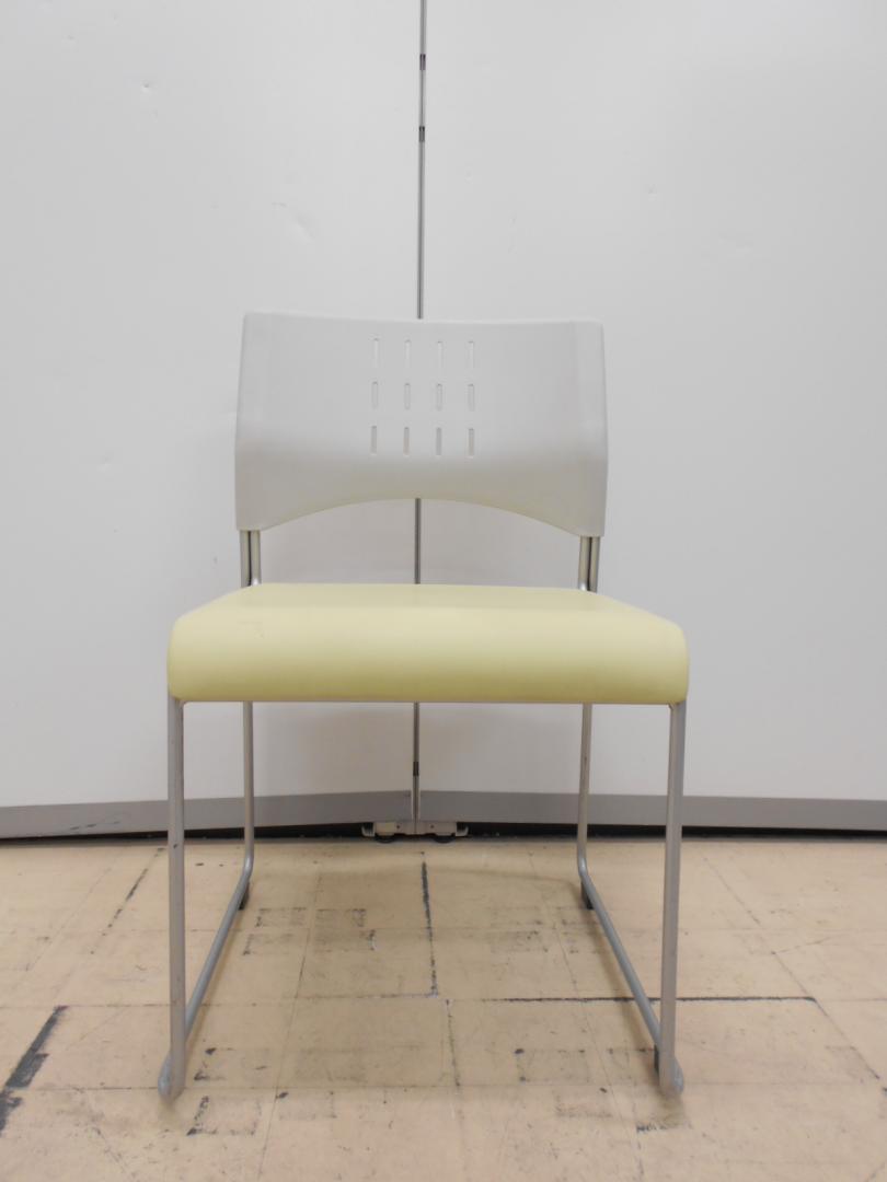 明るいイエローにホワイトのカラーと珍しいスタッキングチェアです。