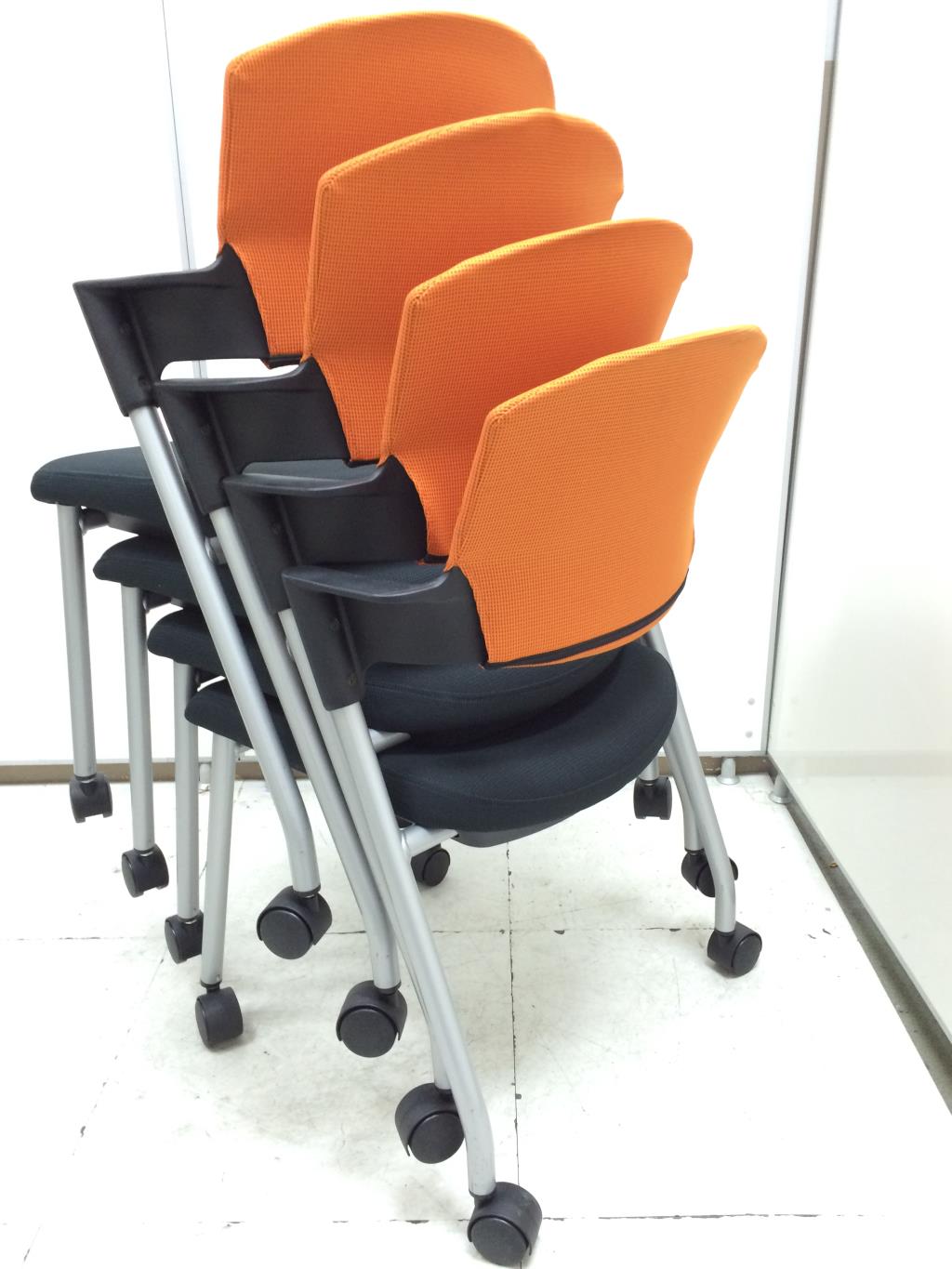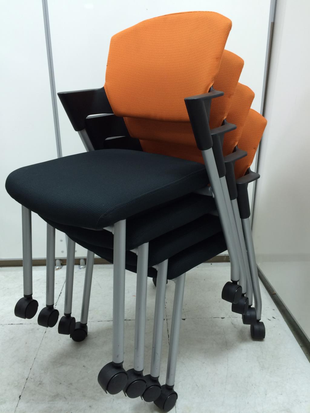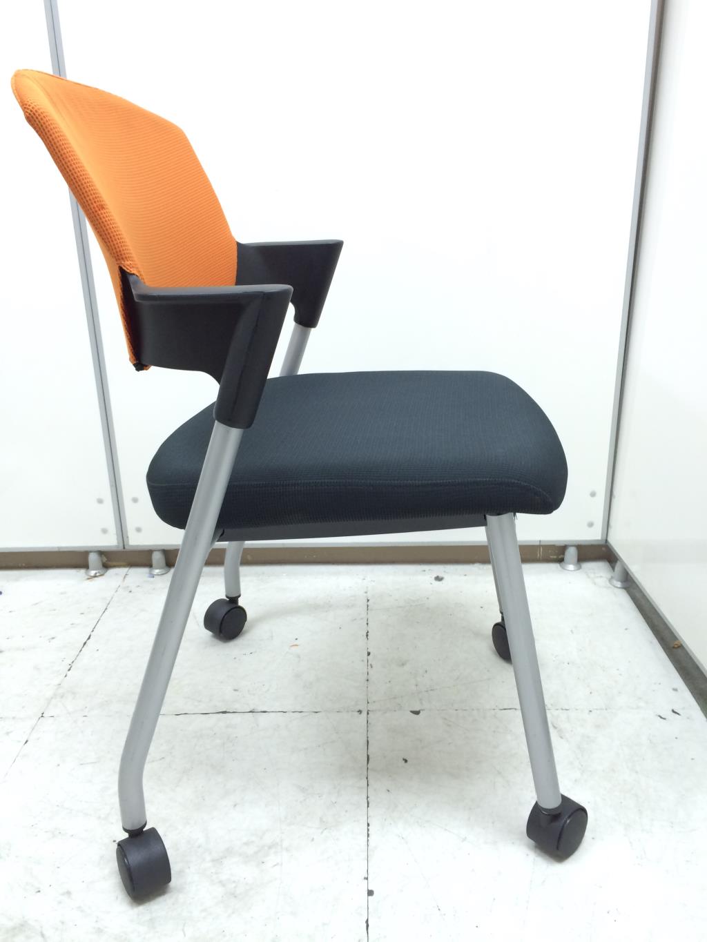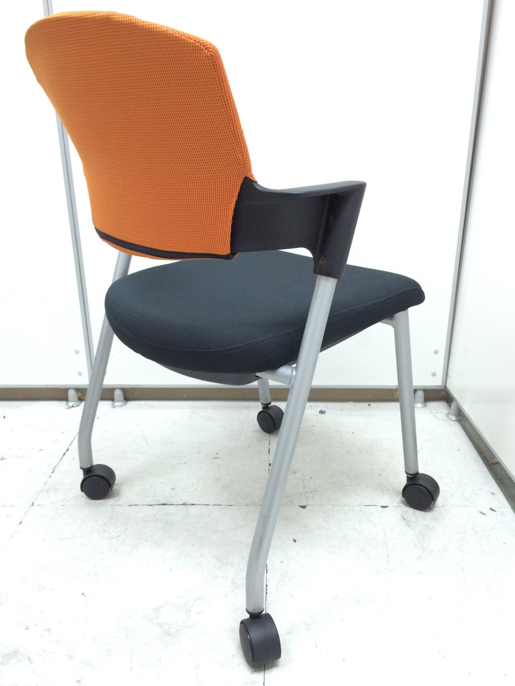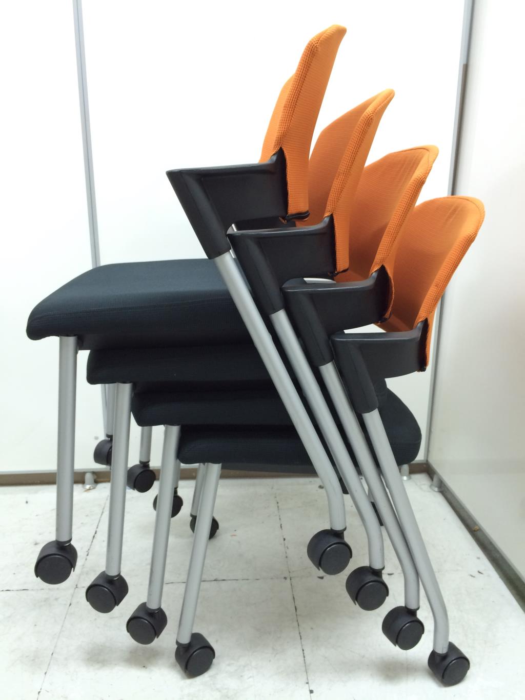 【シンプルスマートなスタッキングチェア!】■コクヨ(KOKUYO) プロッティ(Protty)チェア スタッキングチェア ミーティングチェア ■肘付き キャスター付き ■オレンジ【2505】弊社使用欄【A01018053】