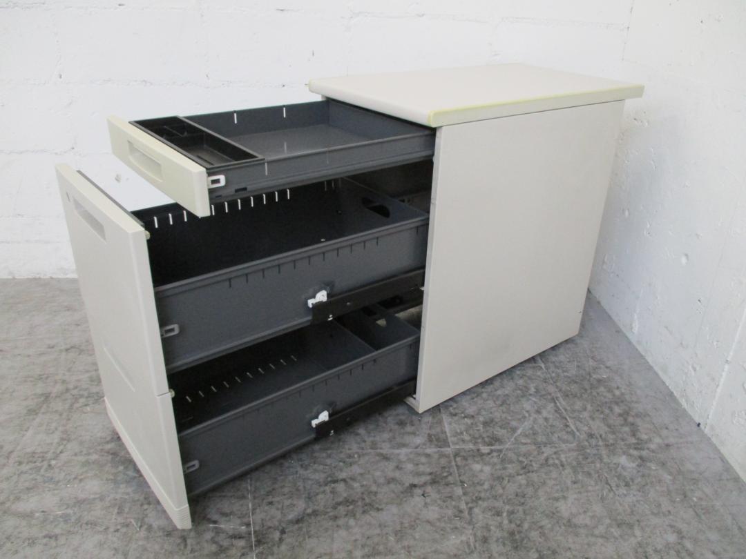 - 多数不具合ありその脇机・ワゴンの本来の効用を果たすための機能以外の多数が使用不可な状態。(例、引出が開閉しづらい、 キャスターロック機能使用不可、ラッチ不良 等がある。)