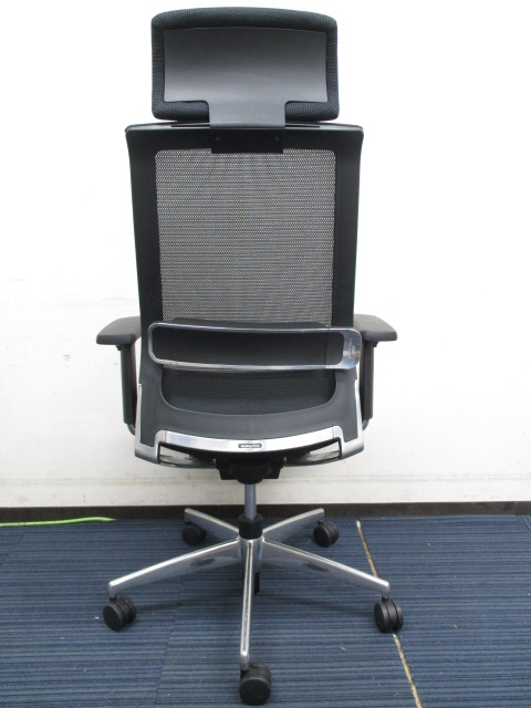 【スマートなデザインの上質チェア!】■コクヨ製 エアフォート 肘付ハイバックチェア ■ブラック ランバーサポート付き 可動肘