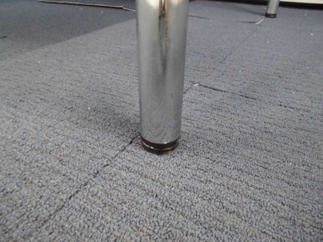 - 一部不具合あり天板歪み、アジャスター無し、キャスター使用不可ようなそのテーブルの本来の効用を果たすための機能以外の一部が使用不可な状態。(例、キャスターロッ ク機能使用不可、棚板無し等がある。)