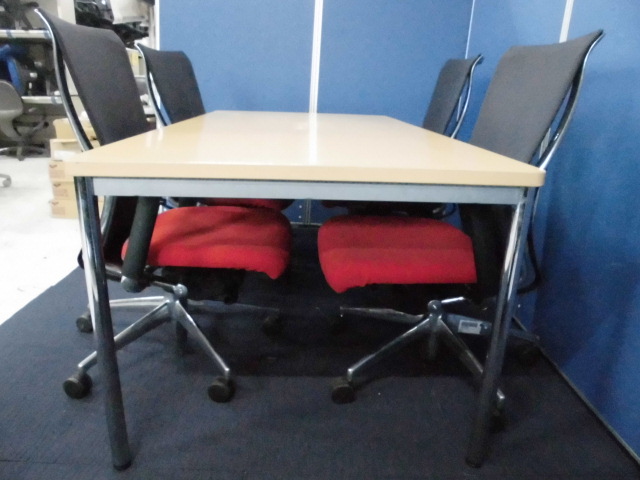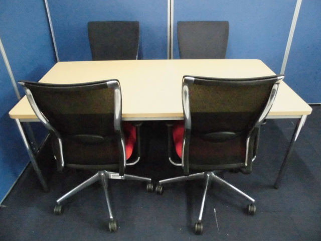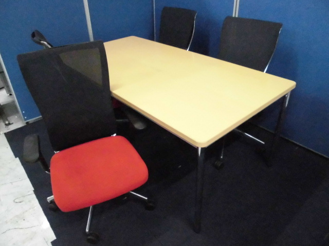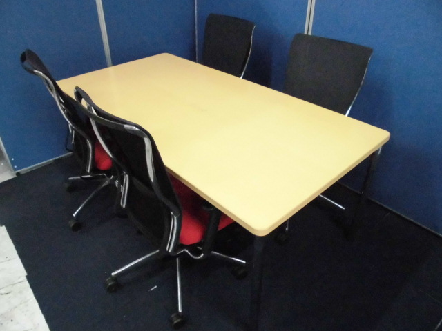 【4名用会議セット】コクヨのフォスターチェア(メッシュ)+ナチュラルカラーのミーティングテーブル【セット商品】- 立川・八王子店