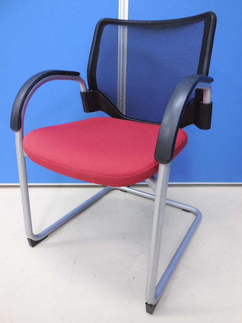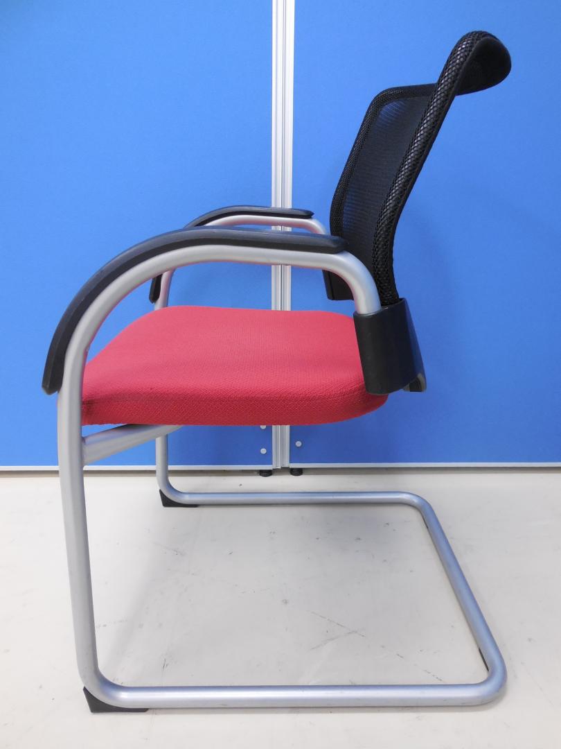 【セットで1000円お得!】岡村製作所製 ミーティングチェア エアリシリーズ■背面メッシュで涼しい!■秋を先取り赤色チェア!【状態良好!】- 足立・葛飾店