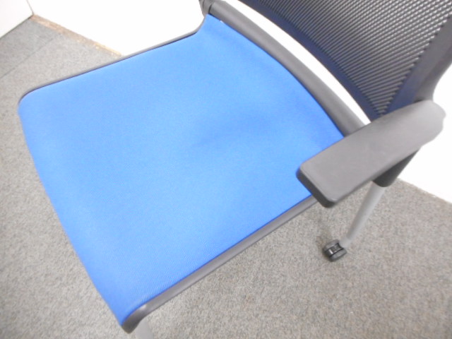【ラスト1点!】■ネスティングチェア(ウチダ製) ■ブルー・肘付 ■水平スタッキング(UCHIDAブランド)- 在庫数