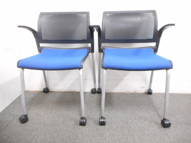 【セット商品】■ウチダ ネスティングチェア2脚セット 肘付 ブルー ■【UCHIDA】カートチェア【ロット】- 在庫数