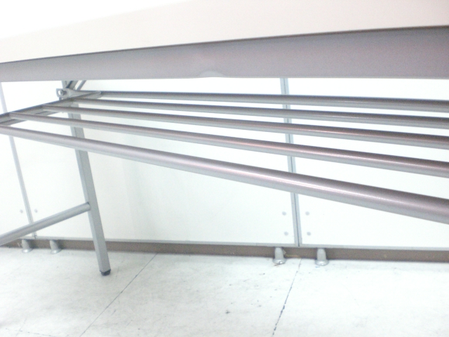 - 一部不具合あり天板歪み、アジャスター無し、キャスター使用不可ようなそのテーブルの本来の効用を果たすための機能以外の一部が使用不可な状態。(例、キャスターロッ ク機能使用不可、棚板無し等がある。)