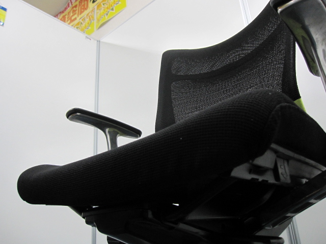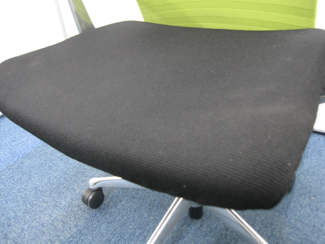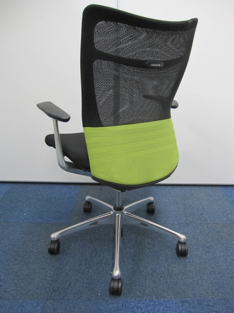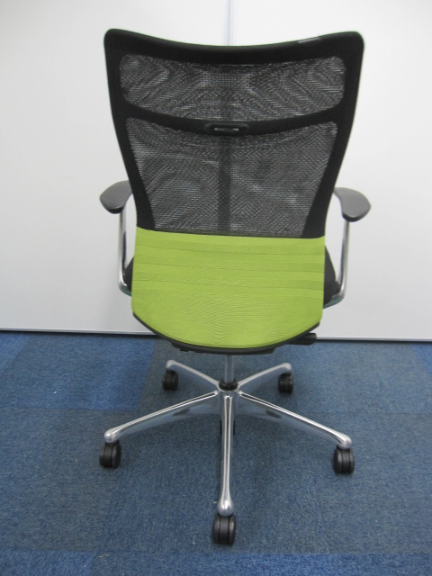 【快適な座り心地で作業効率アップ!】■オカムラ フィーゴチェア 可動肘付 シームレスタイプ ライムグリーン ハンガー付 ※肘に擦れ・削れ・欠けありのためお安く!