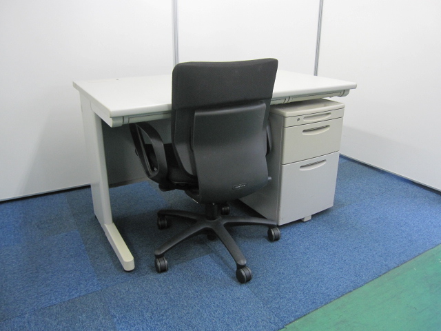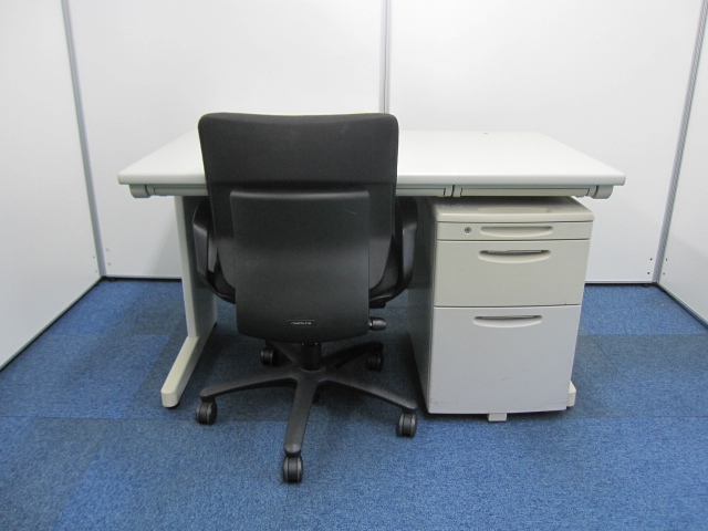 【セット商品】幅120cmのナイキ製 平机と3段ワゴンのオカムラ製SD チェアはオカムラ製アドフィット:カラー・ブラック【オフィス3点セット】【オフィス家具】- 品川・三田店