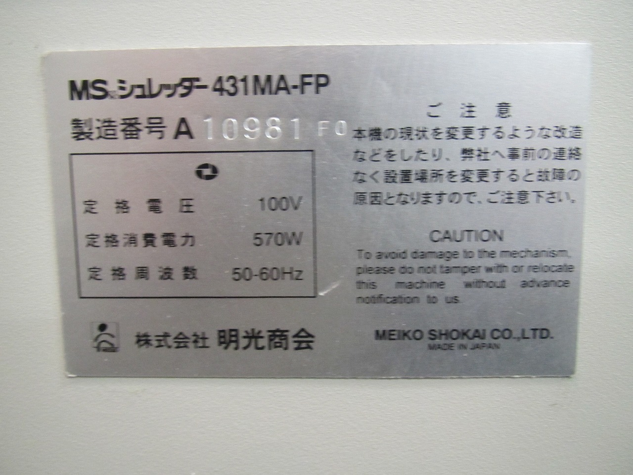 【中古】 MS-431MA-FP 明光商会 シュレッダー 145885