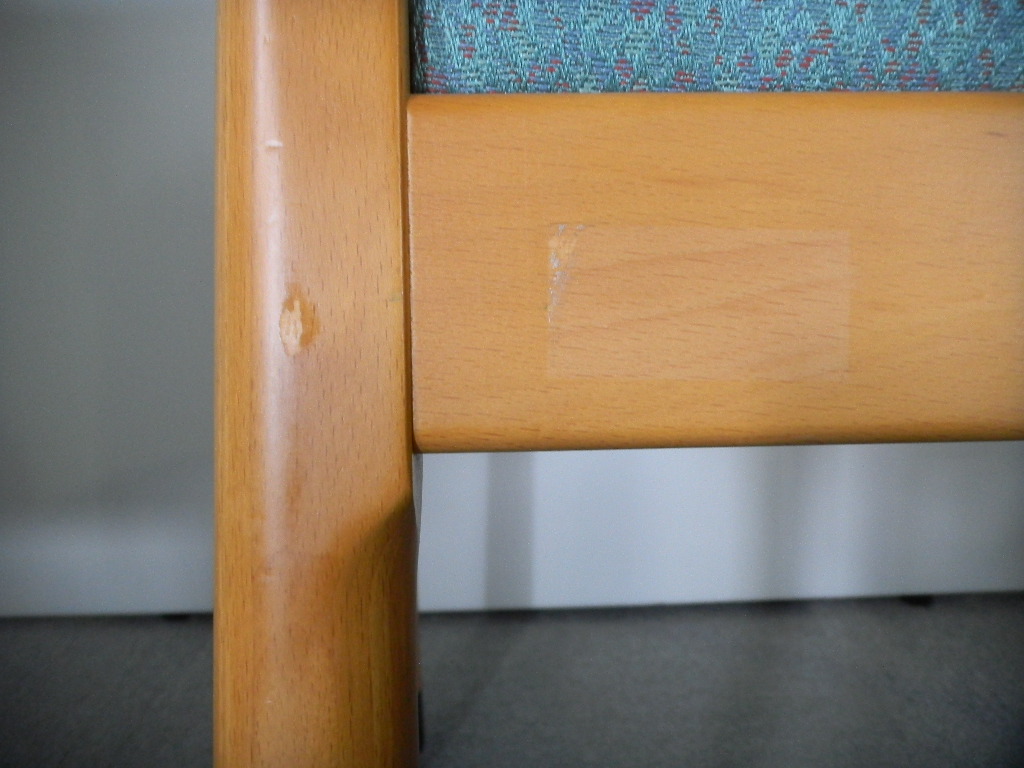 - 目立つ箇所複数あり深い傷・破れ・ほつれ・へたり・しわが商品全体にある。(例、座面・背もたれ、脚部等にある。)