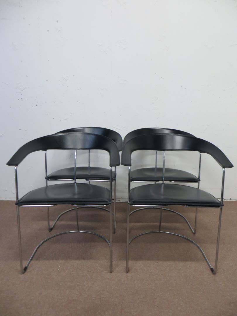【4脚セット】イタリア製の革張りチェア【本革】輸入岡村製作所- 在庫数