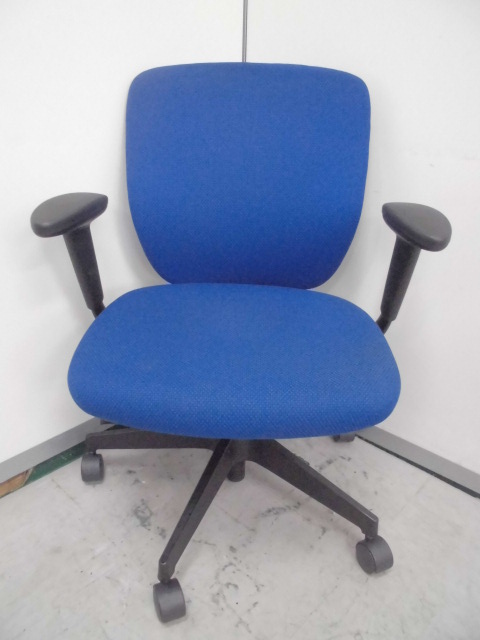 【一人ひとりにマッチする座り心地!ミドルクラスの定番チェア!】■イトーキ(ITOKI)製 プラオ(PRAO)チェア 肘付き ローバック ■固定肘・ランバーサポート付き ■ブルー×ブラックシェル
