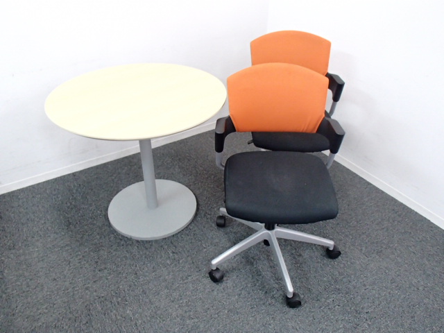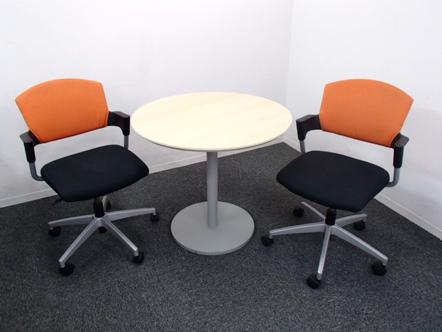 【セット商品】|☆美品商品☆|丸テーブル+ミーティングチェア|コミュニケーション空間を明るく演出します!- 大阪・堺店