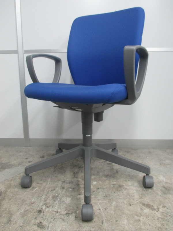 【姿勢に合わせて身体を支えてくれるコスパの良いローコストチェア!シンプルで使いやすい!】■コクヨ(KOKUYO)製 チェロ(CELLO)チェア 肘付ローバック ■スカイブルー×グレーシェル ■サークル肘
