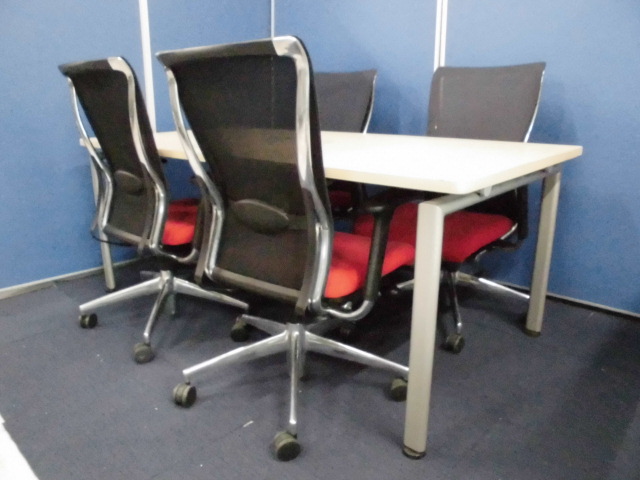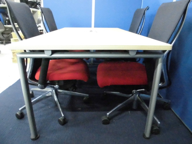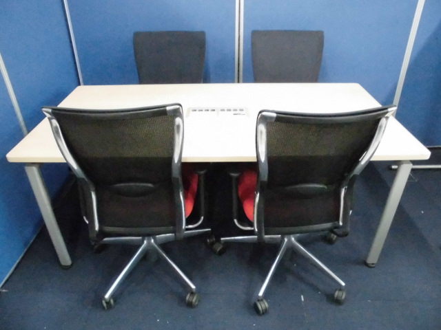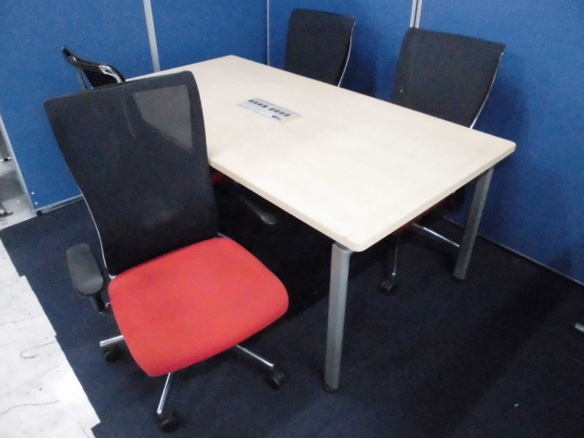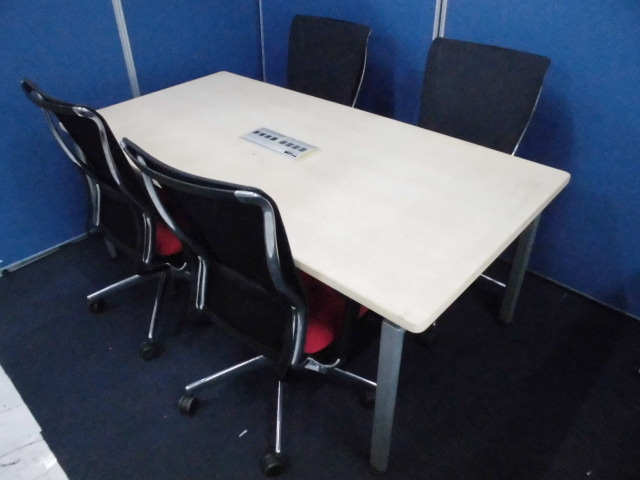 【4名用テーブルセット】フォスターチェア(メッシュ)+LAN・電源のタップ付のミーティングテーブル【セット商品】- 立川・八王子店