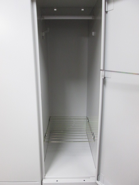 扉の中は洋服を掛けるバーと網棚が付属しております。