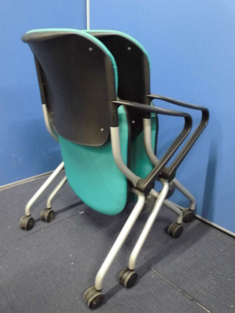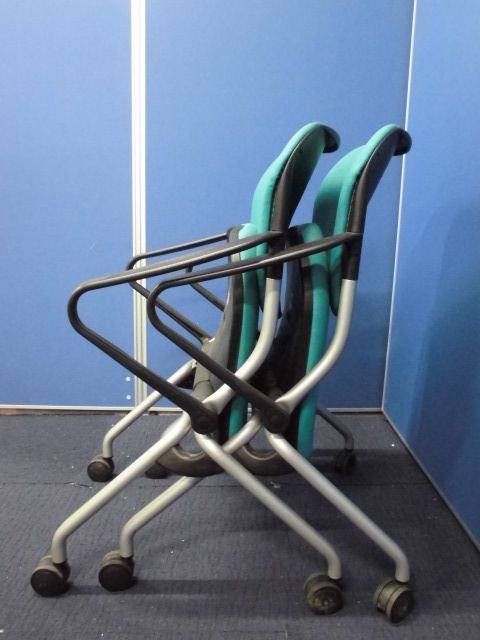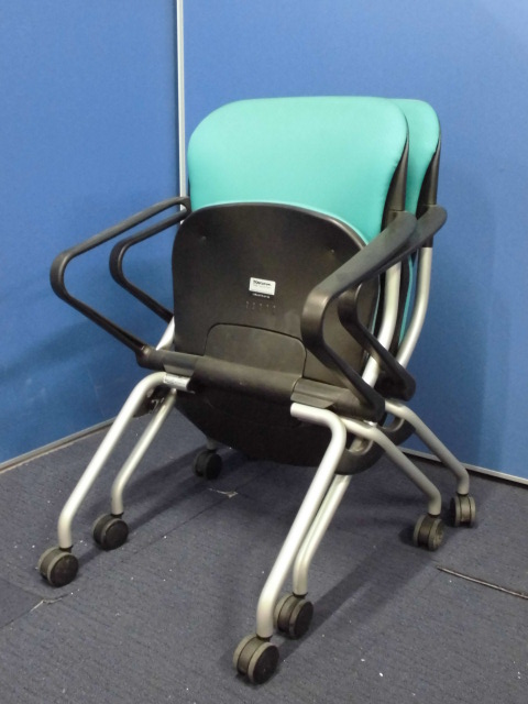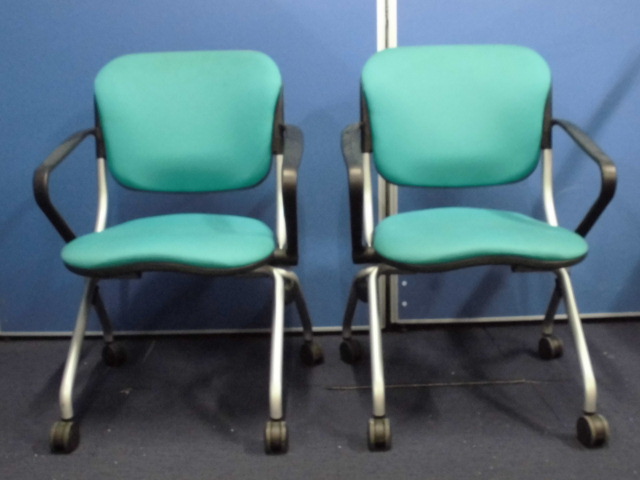 【セット商品】オカムラ|ネスティングチェア2脚セット|トーションシリーズ|肘付|グリーン|ミーティング用などに!- 立川・八王子店