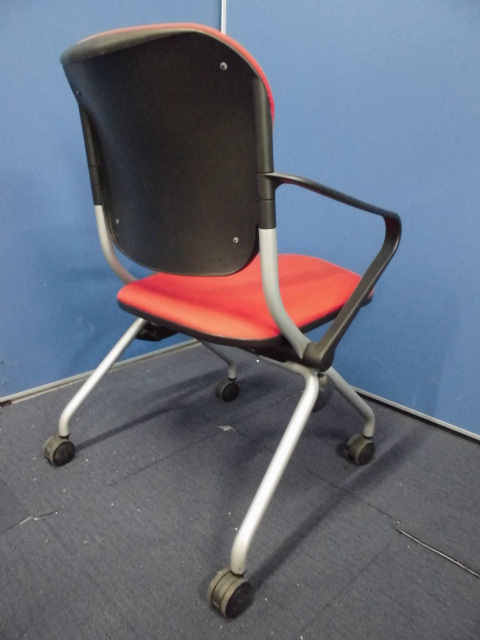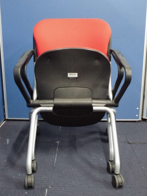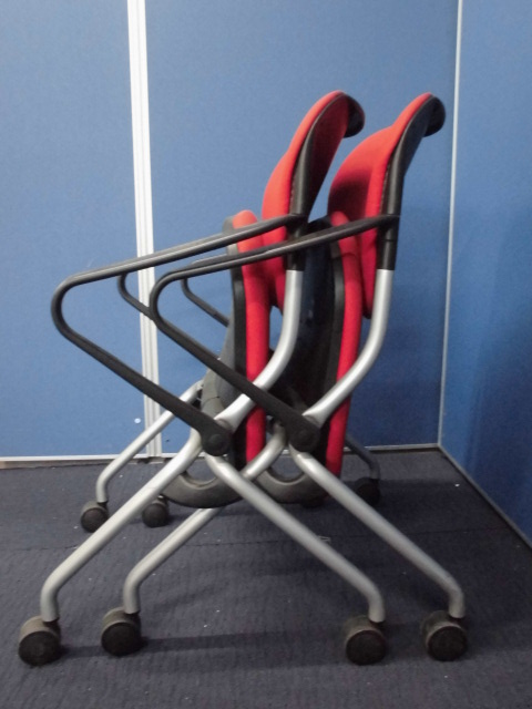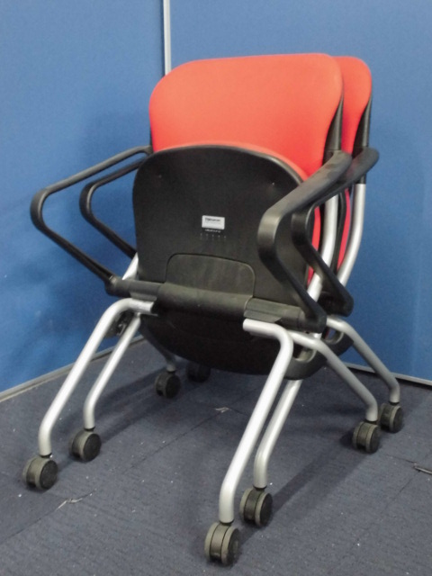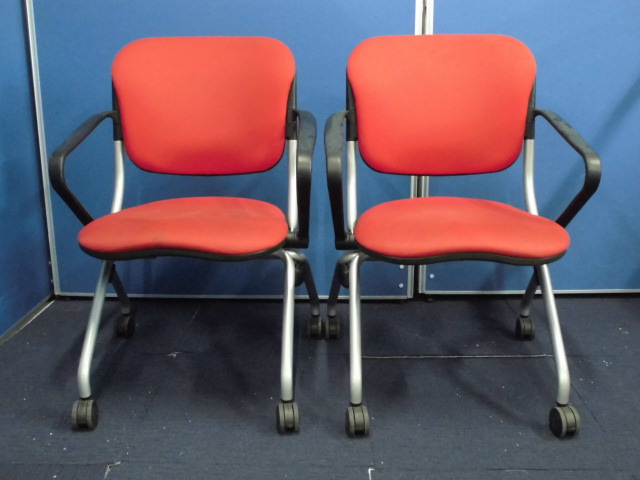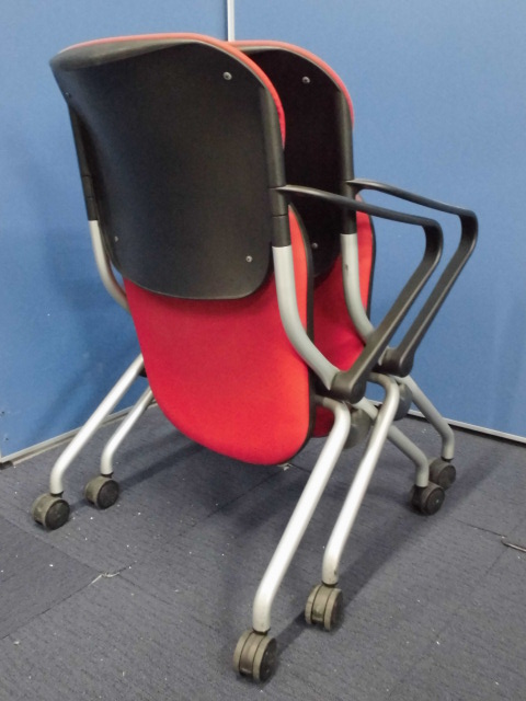 【セット商品】オカムラ|ネスティングチェア2脚セット|トーションシリーズ|肘付|レッド|ミーティング用などに!- 立川・八王子店