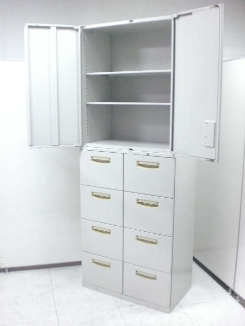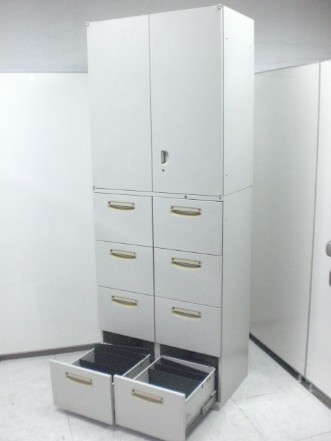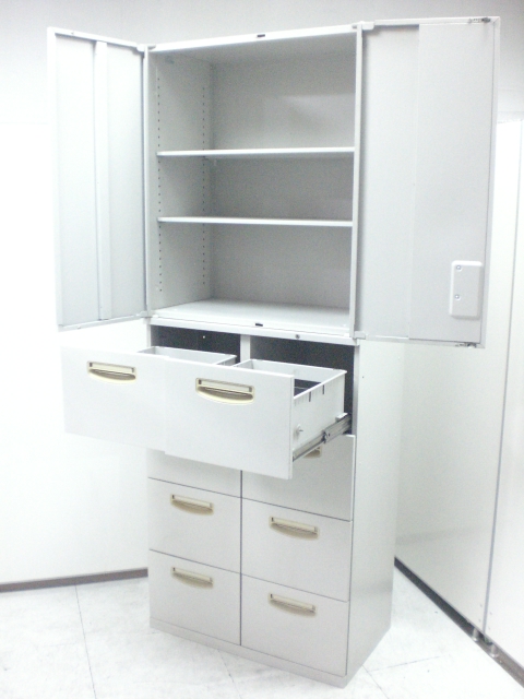 【限定1台】驚異の収納性能 2列4段のラテラル書庫+両開き書庫の変わり者書庫セット!!- 京都東寺店