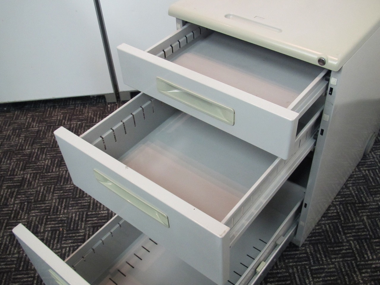 - 一部不具合ありその脇机・ワゴンの本来の効用を果たすための機能以外の一部が使用不可な状態。(例、引出が開閉しづらい、 キャスターロック機能使用不可、ラッチ不良 等がある。)