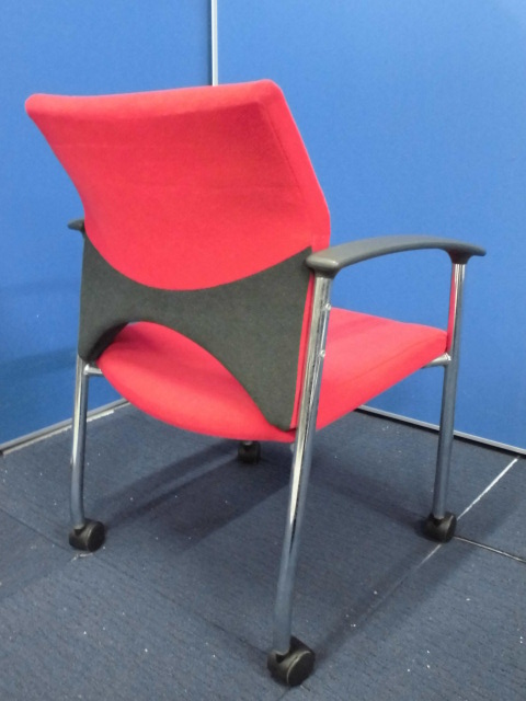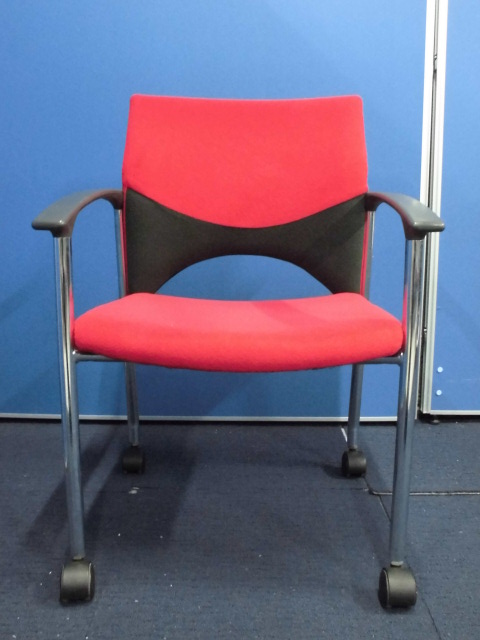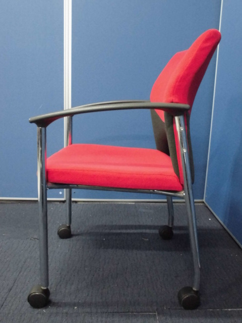【ラスト2脚】ミーティングチェア|キャスター付き|レッド|肌触り柔らか!- 立川・八王子店
