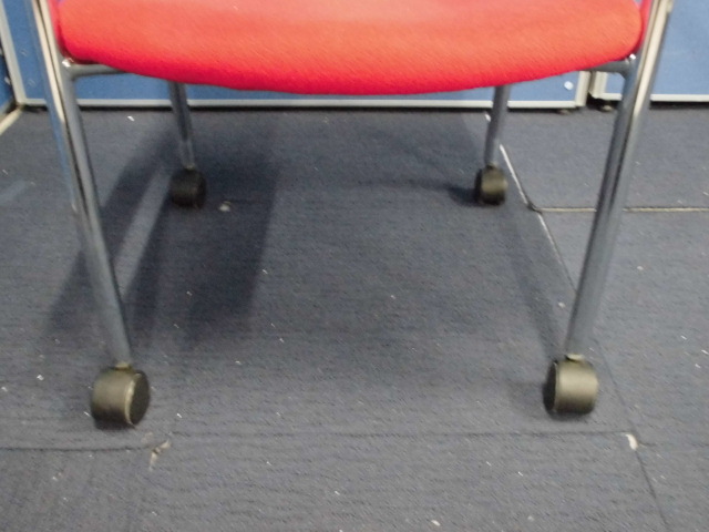 【セット商品】ミーティングチェア2脚セット|キャスター付き|レッド|肌触り柔らか!- 立川・八王子店