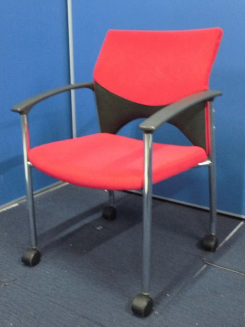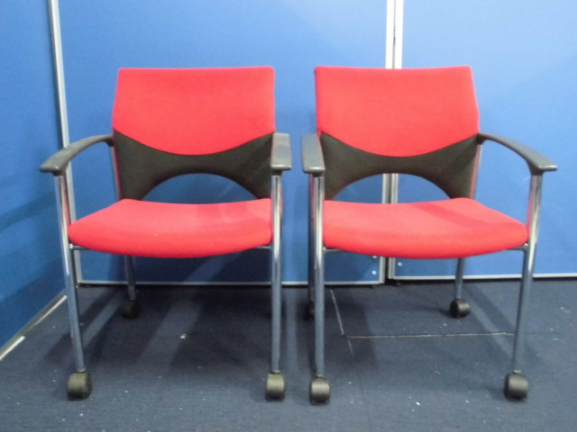 鮮やかな赤色のミーティングチェア2脚セットです!