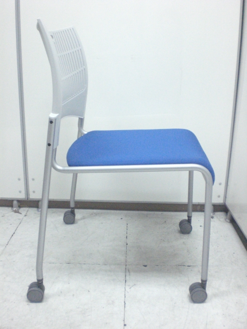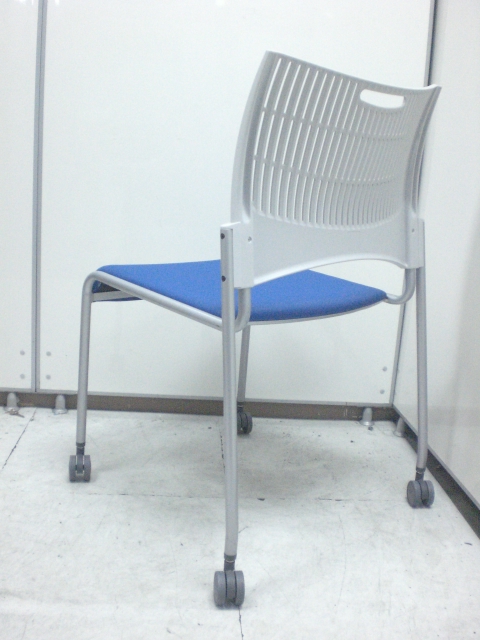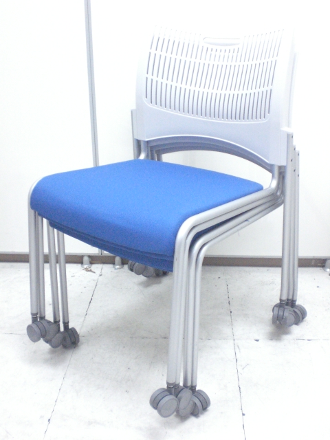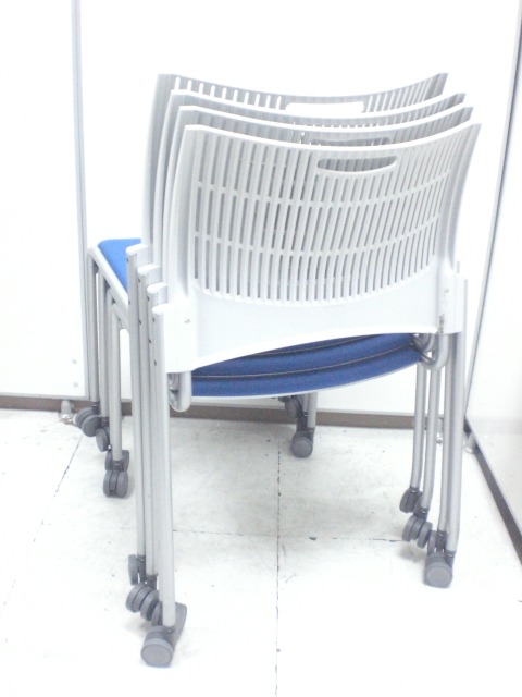 【限定1セット】青色がもはや美しい 状態良好なキャスター付きスタッキングチェア4脚セット商品- 京都東寺店